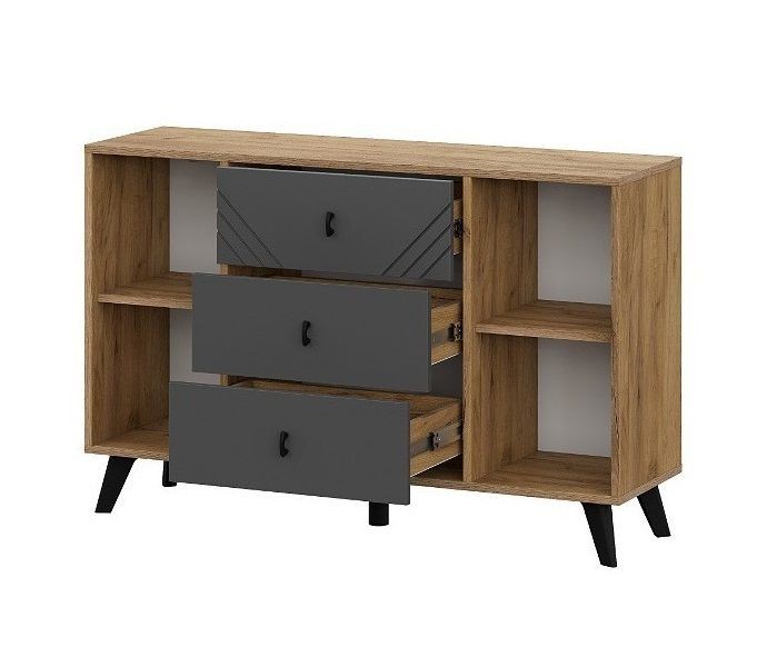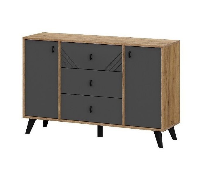 БАЙКАЛ Комод 3 ящика двухстворчатый (Графит/Дуб золотой)