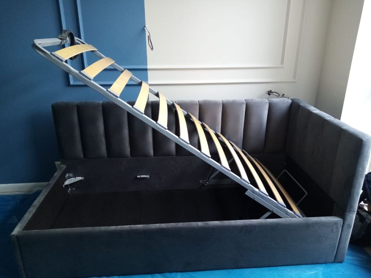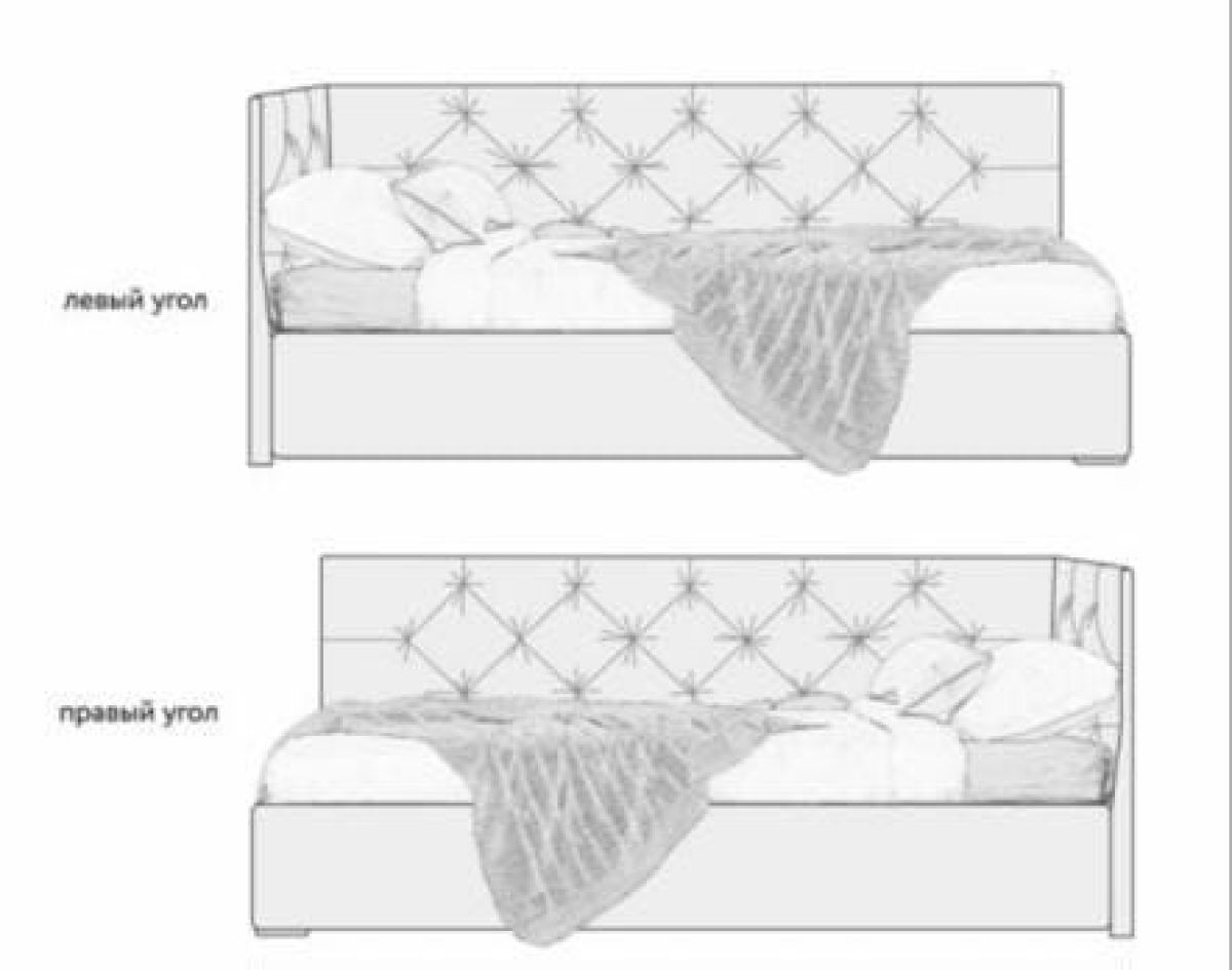 Кровать угловая Виола интерьерная +основание/ПМ/бельевое дно (120х200)
