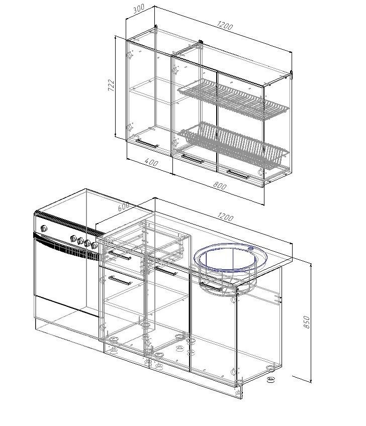 Кухонный гарнитур Капри 1200 (Стол. 38мм)