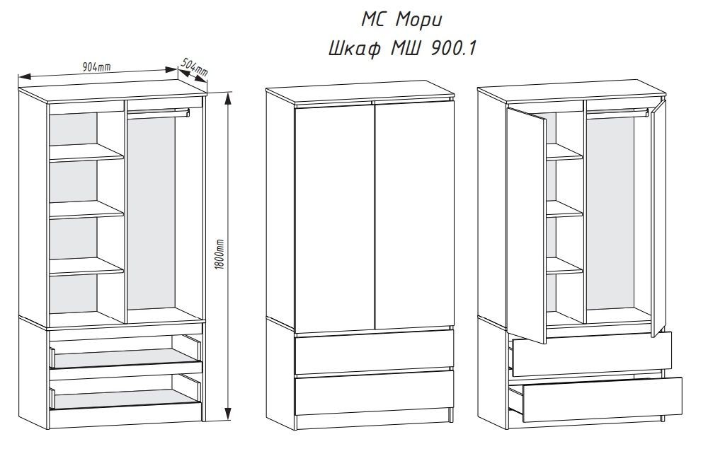 МОРИ МШ 900.1 Шкаф с 2-мя дв. и 2-мя ящ. (Графит)