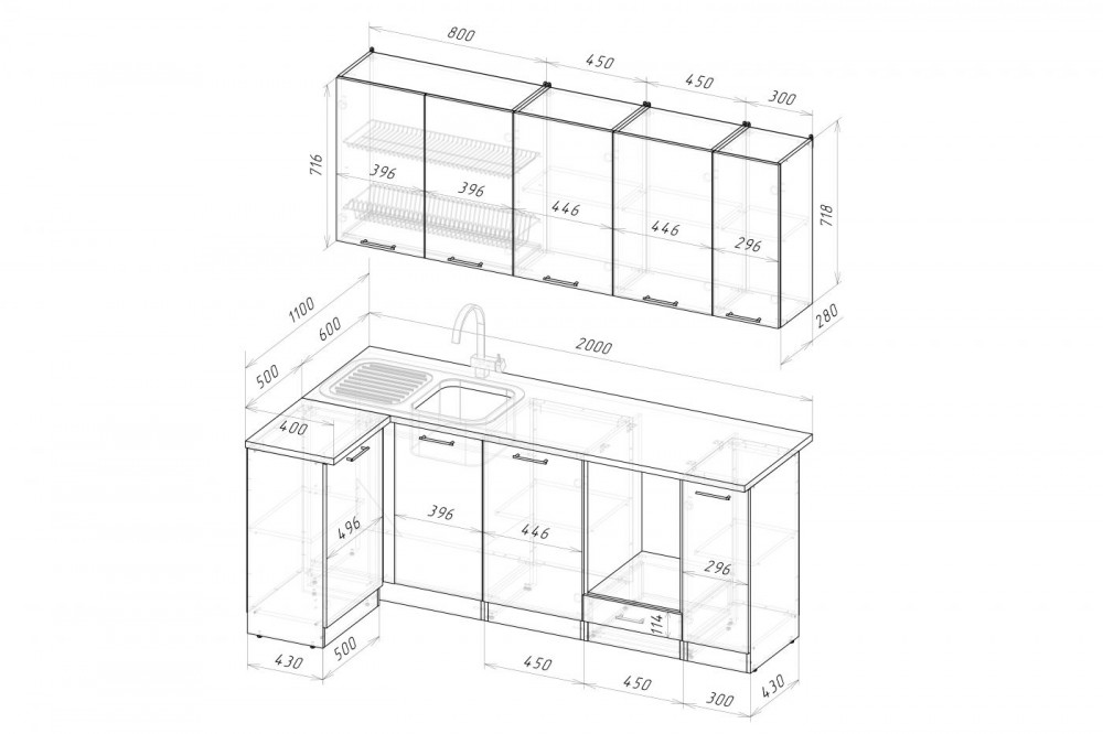 Ширина: 1100*2000 мм; Глубина: 600/400 мм (со столешницей)