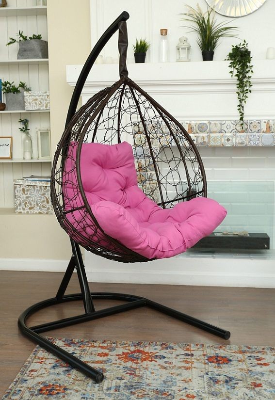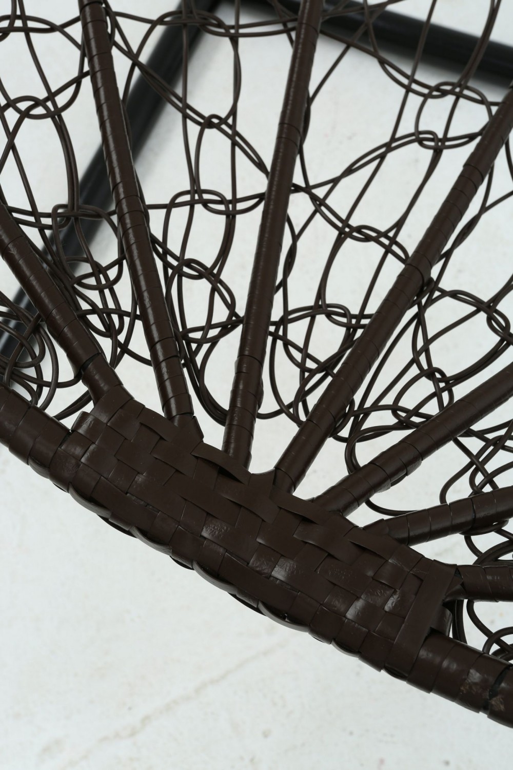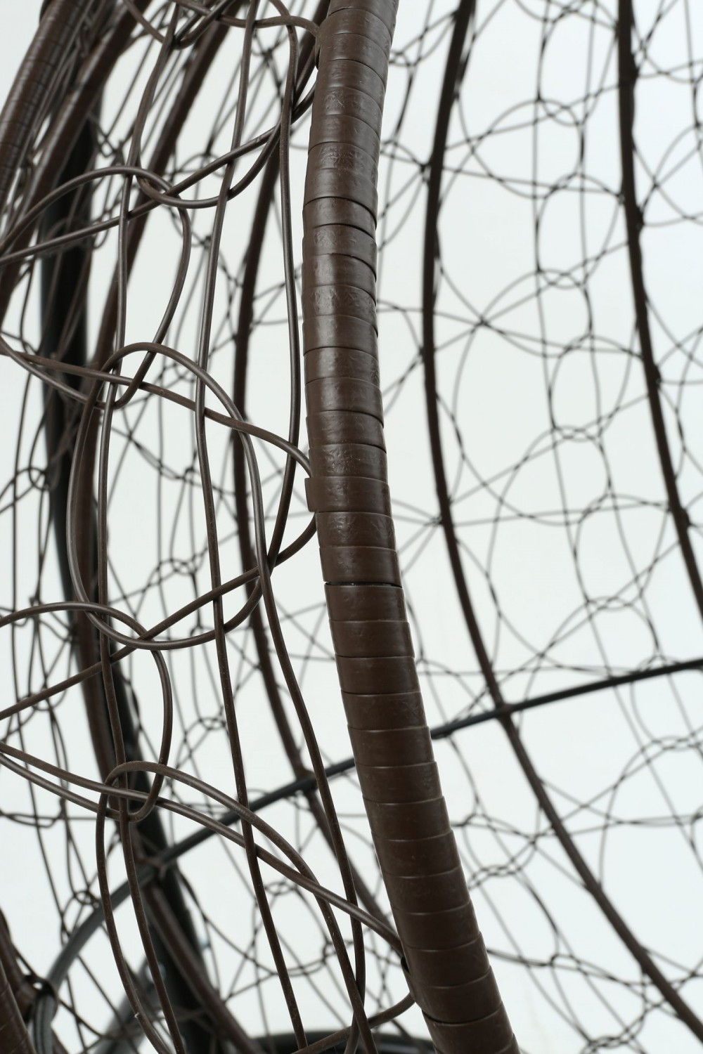 Стойка - стальная диаметр 51 мм, толщина 3 мм. Покрытие порошковой краской. Кокон - стальной каркас с оплетенным экоротангом. Подушка из Габардиновой ткани.